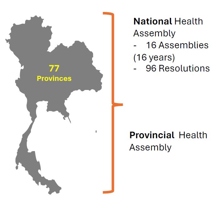 - Organizing Committee: The National Health Commission, supervised by the Prime Minister of Thailand, is responsible for organizing the three types of HAs as part of the participatory health governance mechanism.