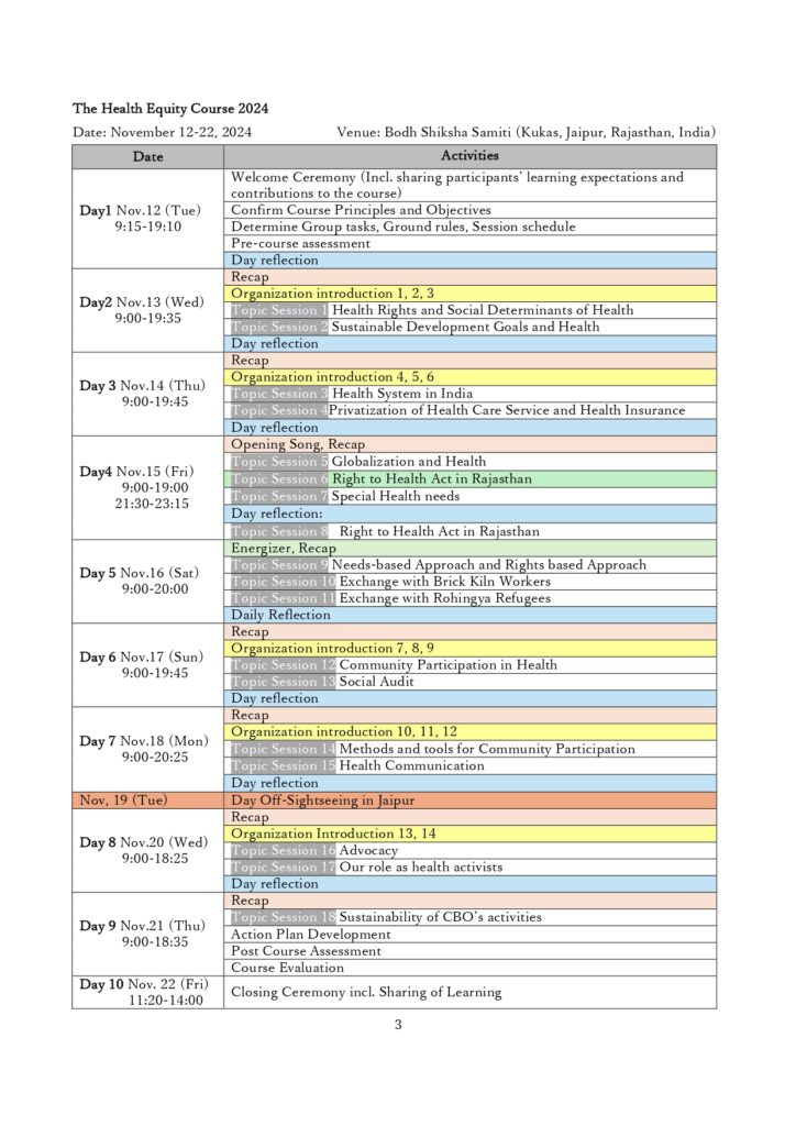 The course will take place from November 4 to 14. You are welcome to observe on selected days, depending on your availability. However, please note that we are unable to inform you in advance of the specific topics for each day, as the detailed content and schedule will be decided by the participants on the first day of the course. For your reference, we have attached the course schedules from 2024.